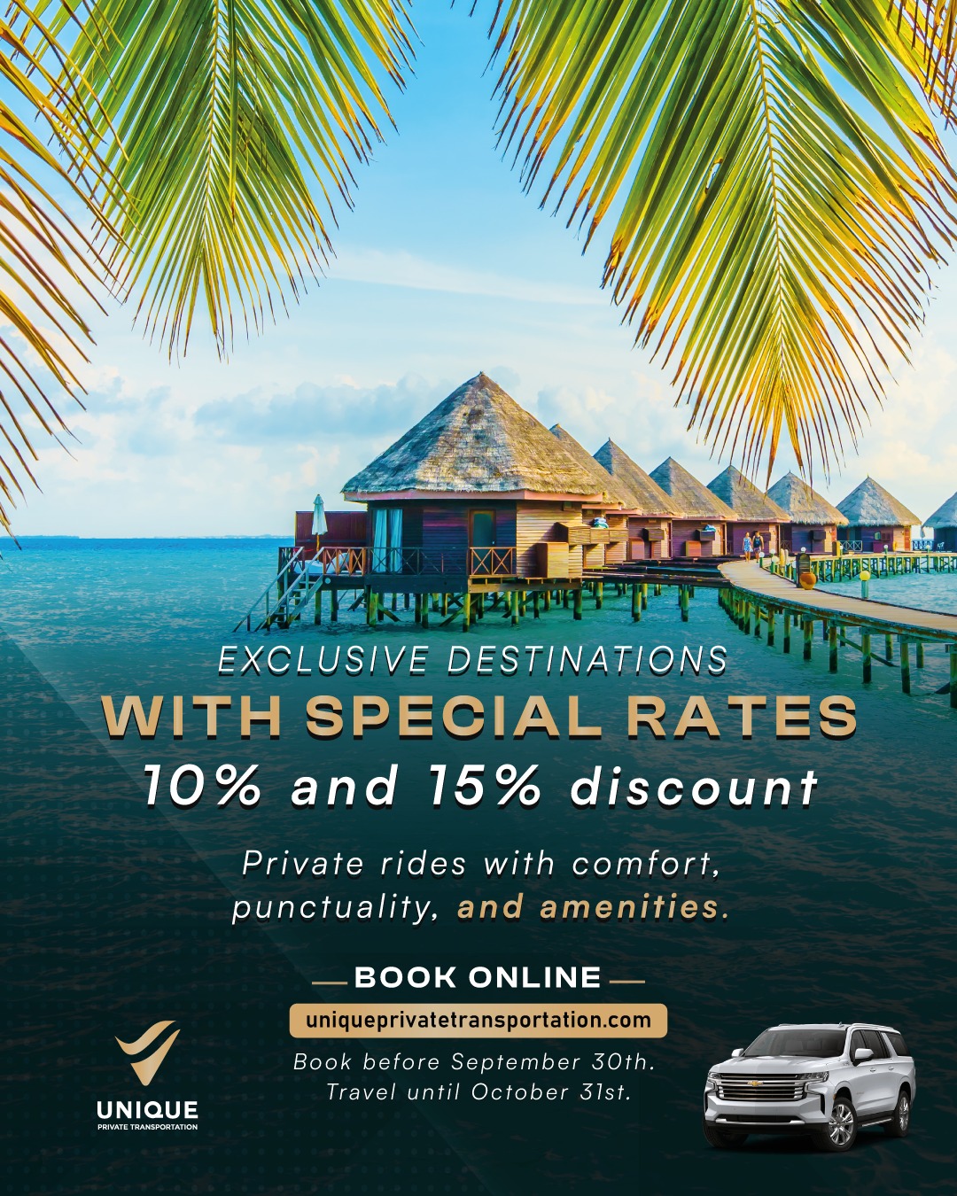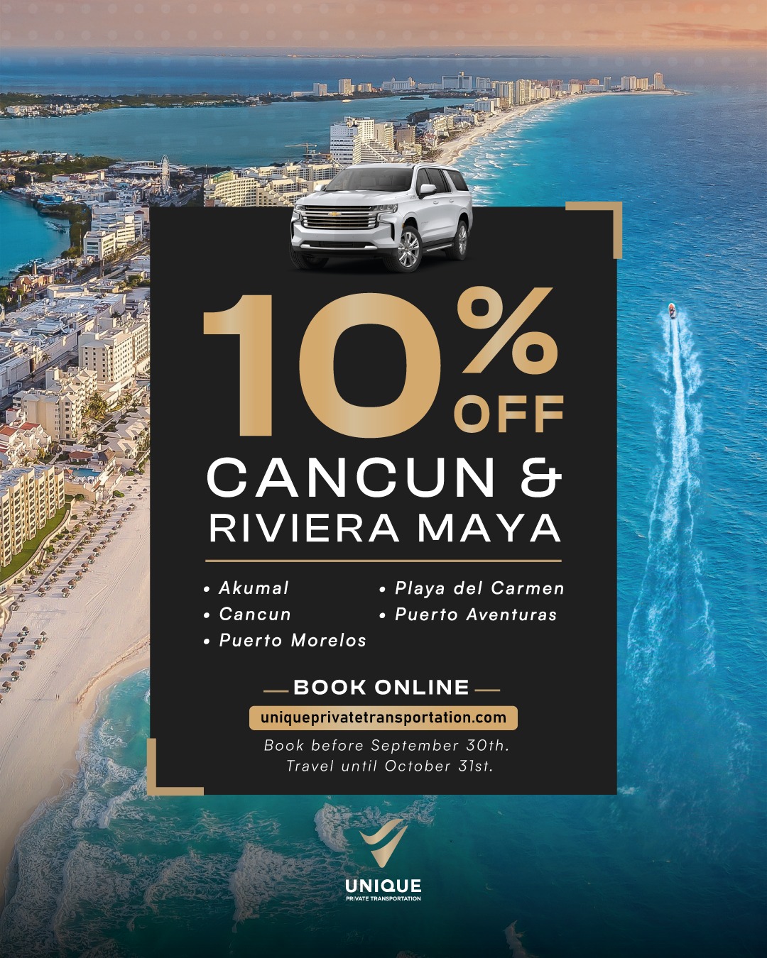 Unique Private Transportation is a premier chauffeured car service based in Cancun, Mexico. Elevate your travel with Cancun luxury transportation. From airport transfers to regional trips, Unique Private Transportation ensures every ride is safe, luxurious, and unforgettable. Our professional chauffeurs are highly experienced in providing top-notch customer service while ensuring your trip is as comfortable and stress-free as possible. Whether you’re traveling for business or pleasure, Unique Private Transportation will make sure that your journey is smooth and enjoyable.